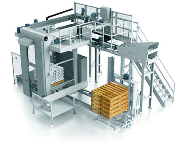 HMD-H高位高速码剁机本机专门针对牛皮纸袋、编制袋、无纺布类袋裝物料的自动堆码而设计堆码速度快,垛体美观整齐。